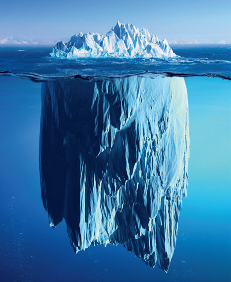 Подсознание (ПС) – это гигантское хранилище памяти, вмещающее всю информацию, полученную нами в течение жизни, а также генетические «сообщения», полученные нами от предков. Эту информацию можно «услышать, увидеть, ощутить», находясь в одном из измененных состояний сознания (ИСС): медитации, сне, гипнозе, влюбленности, опьянении, в т. ч. – наркотическом, и т. д. Соотношение возможностей и объема памяти между сознанием и подсознанием можно представить себе в виде айсберга (см. рис.), в котором сознание – надводная часть.