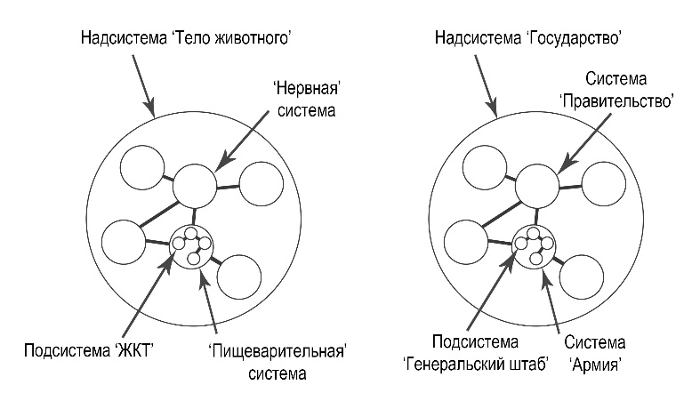 Рисунок 1. Примеры надсистем, систем и подсистем.