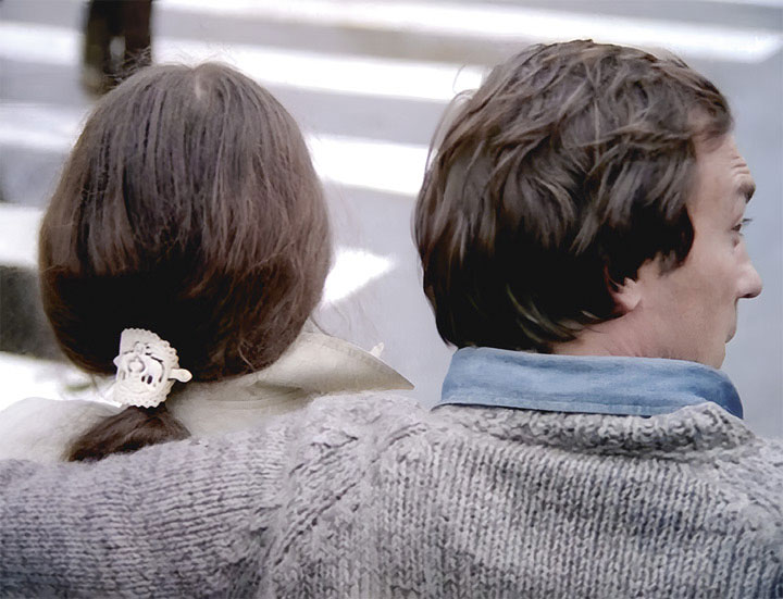 Последний раз, когда мы видим их вместе, они жадно целуются на крупном плане. Затем камера панорамирует по белоснежным подушкам, по решетчатой кроватной спинке на подоконник, на черную занавеску конспиративной служебной квартиры и упирается в тревожный, смурной городской пейзаж за окном. Затуманенный снежной пеленой, он не предвещает ничего хорошего.