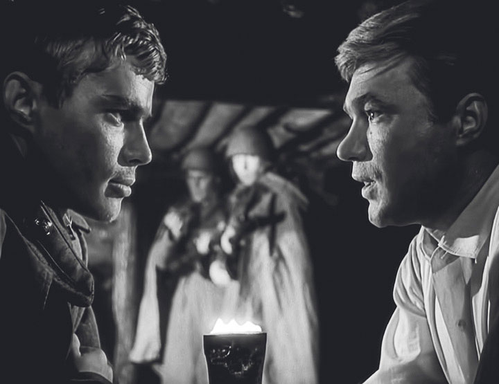 И не только в действиях таких юных шестидесятников, как, например, Олег Савин из «Шумного дня» (1960), который, вооружившись отцовской саблей, атаковал мещанскую полированную мебель, или Колька Снегирёв из фильма «Друг мой, Колька!..» (1961), который не убоялся реальных бандитов, экзальтация и аффект преобладали над зрелой осознанностью поступка. Во многом инфантильное, заносчивое я, опережающее себя в действиях, бушевало и в таком, казалось бы, уже абсолютно зрелом персонаже, как физик-ядерщик Дмитрий Гусев из «Девяти дней одного года» (1961), который буквально вызывал огонь – жесткое излучение – на себя и чуть ли не с вызовом жил в зоне вечного смертельного риска.