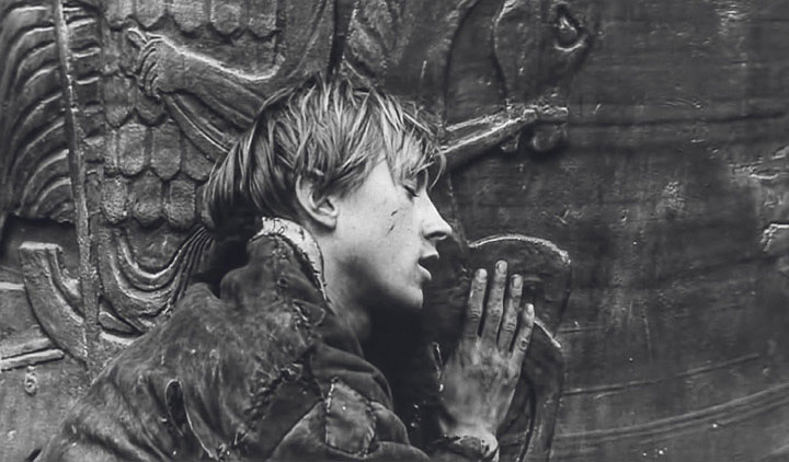 Басовитый, но в духовном регистре исключительно высокий гул колокола особенно важен в «Рублеве», потому что входит в унисон с духовным подвигом главного героя, исполнившего обет молчания. Впервые безмолвствующий монах заговорил именно с Бориской, отлившим колокол в муках. «Отец… так и не передал секрета… в могилу утащил», – плакал Бориска на плече у Рублева. «Вот и пойдем мы с тобой вместе, – говорил Рублев Бориске. – Ты колокола лить, а я иконы писать. Пойдем в Троицу, пойдем вместе. Какой праздник для людей, какую радость сотворил…»
