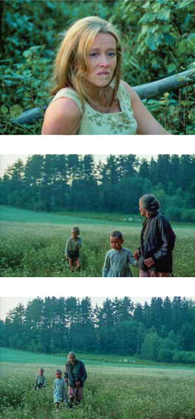 Герой «Зеркала» обретает себя только потому, что отваживается на испытание смертью. Неотвратимая в трагических обстоятельствах истории смерть физическая становится для него духовным, вертикальным обретением, которое позволило и автору-герою и, главное, самому Тарковскому шагнуть-заглянуть в тот универсальный мир, где молодая мать (Маргарита Терехова) и мать в старости (Мария Тарковская-Вишнякова) уже неразрывно связаны друг с другом, где молодой отец (Олег Янковский) озвучен голосом Арсения Тарковского, где рядом с прогнившим остовом старого дома из детства идут еще маленькие его обитатели, стриженные по-военному наголо, и их мать, уже состарившаяся, ставшая бабушкой, ведет их за руки.
