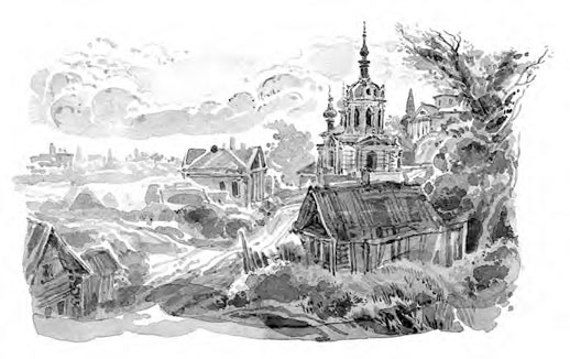 Но всего приятнее для меня то место, на котором возвышаются мрачные, готические башни Си…нова монастыря. Стоя на сей горе, видишь на правой стороне почти всю Москву, сию ужасную громаду домов и церквей, которая представляется глазам в образе величественного амфитеатра, – великолепная картина, особливо когда светит на нее солнце, когда вечерние лучи его пылают на бесчисленных златых куполах, на бесчисленных крестах, к небу возносящихся! Внизу расстилаются тучные, густо-зеленые цветущие луга, а за ними, по желтым пескам, течет светлая река, волнуемая легкими веслами рыбачьих лодок или шумящая под рулем грузных стругов, которые плывут от плодоноснейших стран Российской империи и наделяют алчную Москву хлебом.