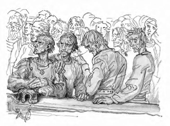 Раздался звук вечевого колокола, и вздрогнули сердца в Новегороде. Отцы семейств вырываются из объятий супруг и детей, чтобы спешить, куда зовет их отечество. Недоумение, любопытство, страх и надежда влекут граждан шумными толпами на великую площадь. Все спрашивают; никто не ответствует… Там, против древнего дому Ярославова, уже собралися посадники с золотыми на груди медалями, тысячские с высокими жезлами, бояре, люди житые со знаменами и старосты всех пяти концов новогородских[7] с серебряными секирами. Но еще не видно никого на месте лобном, или Вадимовом (где возвышался мраморный образ сего витязя). Народ криком своим заглушает звон колокола и требует открытия веча. Иосиф Делинский, именитый гражданин, бывший семь раз степенным посадником – и всякий раз с новыми услугами отечеству, с новою честию для своего имени, – всходит на железные ступени, открывает седую, почтенную свою голову, смиренно кланяется народу и говорит ему, что князь Московский прислал в Великий Новгород своего боярина, который желает всенародно объявить его требования… Посадник сходит – и боярин Иоаннов является на Вадимовом месте, с видом гордым, препоясанный мечом и в латах. То был воевода князь Холмский, муж благоразумный и твердый – правая рука Иоаннова в предприятиях воинских, око его в делах государственных – храбрый в битвах, велеречивый в совете. Все безмолвствуют, боярин хочет говорить… Но юные надменные новогородцы восклицают: «Смирись пред великим народом!» Он медлит – тысячи голосов повторяют: «Смирись пред великим народом!» Боярин снимает шлем с головы своей – и глум умолкает.