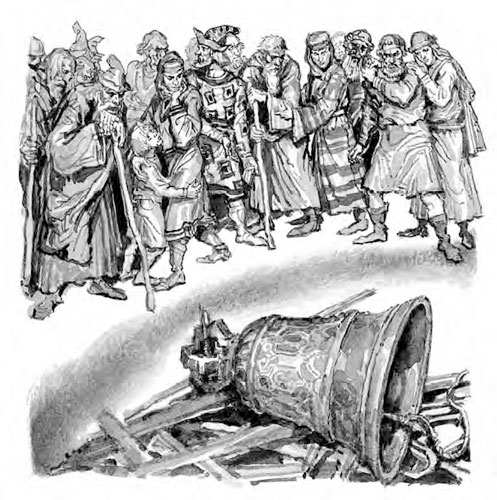 Но если Иоанн говорит истину, если в самом деле гнусное корыстолюбие овладело душами новогородцев, если мы любим сокровища и негу более добродетели и славы, то скоро ударит последний час нашей вольности, и вечевой колокол, древний глас ее, падет с башни Ярославовой и навсегда умолкнет!.. Тогда, тогда мы позавидуем счастию народов, которые никогда не знали свободы. Ее грозная тень будет являться нам, подобно мертвецу бледному, и терзать сердце наше бесполезным раскаянием!