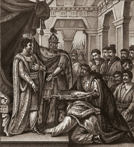 Изяслав принят братом Всеволодом, который предложил ему мир. Гравюра Б. Чорикова