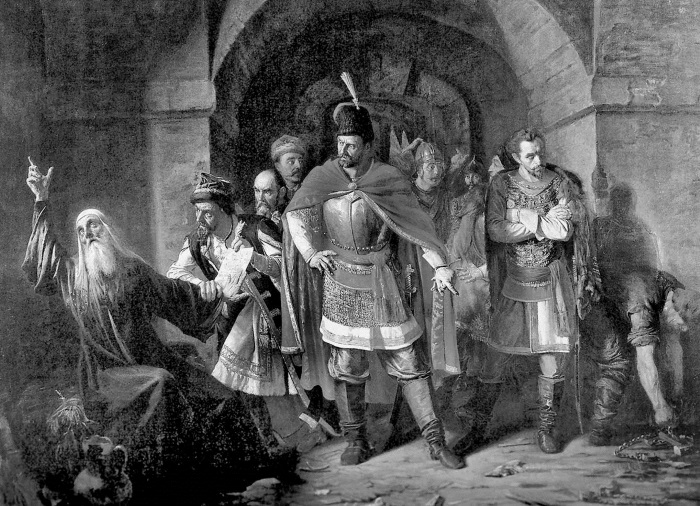 Уже Москвитяне, слыша о ревностном восстании городов, переменились в обхождении с Ляхами: быв долго смиренны, начали оказывать неуступчивость, строптивость, дух враждебный и сварливый, как было пред гибелью расстриги. Кричали на улицах: "Мы по глупости выбрали Ляха в Цари, однако ж не с тем, чтобы идти в неволю к Ляхам; время разделаться с ними!" В грубых насмешках давали им прозвание хохлов, а купцы за все требовали с них вдвое. Уже начинались ссоры и драки. Госевский требовал от своих благоразумия, терпения и неусыпности. Они бодрствовали день и ночь, не снимая с себя доспехов, ни седел с коней; ежедневно, три и четыре раза, били тревогу; имели везде лазутчиков; осматривали на заставах возы с дровами, сеном, хлебом и находили в них иногда скрытое оружие. Высылали конные дружины на дороги, перехватили тайное письмо из Москвы к областным жителям и сведали, что они в заговоре с ними и что Патриарх есть глава его; что Москвитяне надеются не оставить ни одного Ляха живого, как скоро увидят войско избавителей под своими стенами. Не взирая на то, Госевский еще не смел употребить средств жестоких, ни обезоружить стрельцов и граждан, ни свергнуть Патриарха; довольствовался угрозами, сказав Ермогену, что святость сана не есть право быть возмутителем. Более наглости оказали злодеи Российские. Михайло Салтыков требовал, чтобы Ермоген не велел ополчаться Ляпунову. "Не велю, – ответствовал Патриарх, – если увижу крещенного Владислава в Москве и Ляхов, выходящих из России; велю, если не будет того, и разрешаю всех от данной Королевичу присяги". Салтыков в бешенстве выхватил нож: Ермоген осенил его крестным знамением и сказал громогласно: "Сие знамение против ножа твоего, да взыдет вечная клятва на главу изменника!" И взглянув на печального Мстиславского, примолвил тихо: "твое начало: ты должен первый умереть за Веру и Государство; а если пленишься кознями сатанинскими, то Бог истребит корень твой на земле живых – и сам умрешь какою смертию?" Предсказание исполнилось, говорит Летописец: ибо Мстиславский никак не хотел одобрить народного восстания и писал от имени Синклита грамоту за грамотою к Королю, что обстоятельства ужасны и время дорого; что одна столица еще не изменяет Владиславу, а Держава в безначалии готова разделиться; что Иваньгород и Псков, обольщенные генералом Делагарди, желают иметь Царем Шведского Принца; что Астрахань и Казань, где господствует злочастие Магометово, умышляют предаться Шаху Аббасу; что области Низовье, Степные, Восточные и Северные до пустынь Сибирских возмущены Ляпуновым; но что немедленное прибытие Королевича еще может все исправить, спасти Россию и честь Королевскую. Изменники же, Салтыков и Андронов, звали в Москву не Владислава, а самого Короля с войском, ответствуя ему за успех, то есть за порабощение России обманом и насилием.