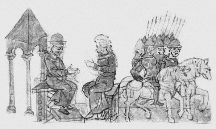 «О дети мои! Хвалите Бога! Любите также человечество. Не пост, не уединение, не Монашество спасет вас, но благодеяния. Не забывайте бедных; кормите их, и мыслите, что всякое достояние есть Божие и поручено вам только на время. Не скрывайте богатства в недрах земли: сие противно Христианству. Будьте отцами сирот: судите вдовиц сами; не давайте сильным губить слабых. Не убивайте ни правого, ни виновного: жизнь и душа Христианина священна. Не призывайте всуе имени Бога; утвердив же клятву целованием крестным, не преступайте оной. Братья сказали мне: изгоним Ростиславичей и возьмем их область, или ты нам не союзник! Но я ответствовал: не могу забыть крестного целования, развернул Псалтырь и читал с умилением: вскую печальна ecu, душе моя? Уповай на Бога, яко исповемся Ему. Не ревнуй лукавнующим ниже завиди творящим беззаконие. – Не оставляйте больных; не страшитесь видеть мертвых: ибо все умрем. Принимайте с любовию благословение Духовных; не удаляйтесь от них; творите им добро, да молятся за вас Всевышнему. Не имейте гордости ни в уме, ни в сердце, и думайте: мы тленны; ныне живы, а завтра во гробе. – Бойтесь всякой лжи, пиянства и любострастия, равно гибельного для тела и души. – Чтите старых людей как отцов, любите юных как братьев. – В хозяйстве сами прилежно за всем смотрите, не полагаясь на Отроков и Тиунов, да гости не осудят ни дому, ни обеда вашего. – На войне будьте деятельны; служите примером для Воевод. Не время тогда думать о пиршествах и неге. Расставив ночную стражу, отдохните. Человек погибает внезапу: для того не слагайте с себя оружия, где может встретиться опасность, и рано садитесь на коней. – Путешествуя в своих областях, не давайте жителей в обиду Княжеским Отрокам; а где остановитесь, напойте, накормите хозяина. Всего же более чтите гостя, и знаменитого и простого, и купца и Посла; если не можете одарить его, то хотя брашном и питием удовольствуйте: ибо гости распускают в чужих землях и добрую и худую об нас славу. – Приветствуйте всякого человека, когда идете мимо. – Любите жен своих, но не давайте им власти над собою. – Все хорошее, узнав, вы должны помнить: чего не знаете, тому учитесь. Отец мой, сидя дома, говорил пятью языками: за что хвалят нас чужестранцы. Леность – мать пороков: берегитесь ее. Человек должен всегда заниматься: в пути, на коне, не имея дела, вместо суетных мыслей читайте наизусть молитвы или повторяйте хотя самую краткую, но лучшую: Господи помилуй. Не засыпайте никогда без земного поклона; а когда чувствуете себя нездоровыми, то поклонитесь в землю три раза. Да не застанет вас солнце на ложе! Идите рано в церковь воздать Богу хвалу утреннюю: так делал отец мой; так делали все добрые мужи. Когда озаряло их солнце, они славили господа с радостию и говорили: Просвети очи мои, Христе Боже, и дал ми ecu свет Твои красный. Потом садились думать с дружиною, или судить народ, или ездили на охоту; а в полдень спали: ибо не только человеку, но и зверям и птицам Бог присудил отдыхать в час полуденный. – Так жил и ваш отец. Я сам делал все, что мог бы велеть Отроку: на охоте и войне, днем и ночью, в зной летний и холод зимний не знал покоя; не надеялся на посадников и бирючей; не давал бедных и вдовиц в обиду сильным; сам назирал церковь и Божественное служение, домашний распорядок, конюшню, охоту, ястребов и соколов». – Исчислив свои дела в