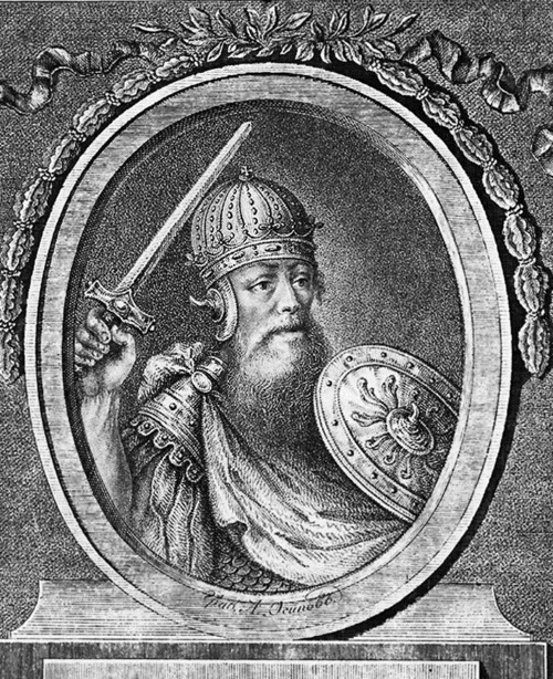 [964–966 г.] Сей Князь, возмужав, думал единственно о подвигах великодушной храбрости, пылал ревностию отличить себя делами и возобновить славу оружия Российского, столь счастливого при Олеге; собрал войско многочисленное и с нетерпением юного Героя летел в поле. Там суровою жизнию он укрепил себя для трудов воинских, не имел ни станов, ни обоза; питался кониною, мясом диких зверей и сам жарил его на углях; презирал хлад и ненастье северного климата; не знал шатра и спал под сводом неба: войлок подседельный служил ему вместо мягкого ложа, седло изголовьем. Каков был Военачальник, таковы и воины. – Древняя летопись сохранила для потомства еще прекрасную черту характера его: он не хотел пользоваться выгодами нечаянного нападения, но всегда заранее объявлял войну народам, повелевая сказать им: иду на вас! В сии времена общего варварства гордый Святослав соблюдал правила истинно Рыцарской чести.