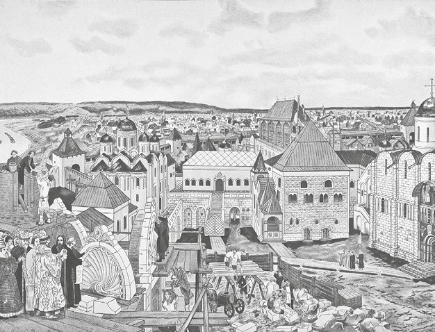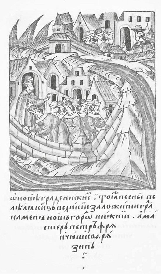 Петр Фрязин строит Нижегородский Кремль.