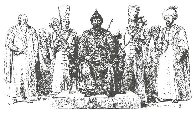 При Иване III стремительно выросшее и наполнившееся мощью Московское государство сделалось известным в Европе, до того представлявшей земли на «русском Востоке» как мрачную Тартарию. «В сие время отечество наше было как бы новым светом, открытым царевною Софиею (Палеолог. – Н. И.) для знатнейших европейских держав», – пишет Карамзин, сравнивая открытие Европой для себя России с открытием Америки Колумбом, почти одновременные события. Упоминание Нового Света в этом контексте неслучайно. Ведущая держава западноевропейского мира, Священная Римская империя, не имея доступа к дележке колониального пирога великих географических открытий, рассматривала Русь в качестве своей «Америки», которая обещала фантастические перспективы территориальных и ресурсных приращений. Ко двору Ивана III дважды отправлялись посольства с щедрыми предложениями для Москвы: цесарь соглашался принять Русь в состав своей империи на правах провинции и короновать великого князя в качестве наместника этой провинции. Единственным условием было обращение русских в католичество. И условие, и само предложение, и тон превосходства, с которым оно преподносилось, были восприняты в Москве как оскорбление.