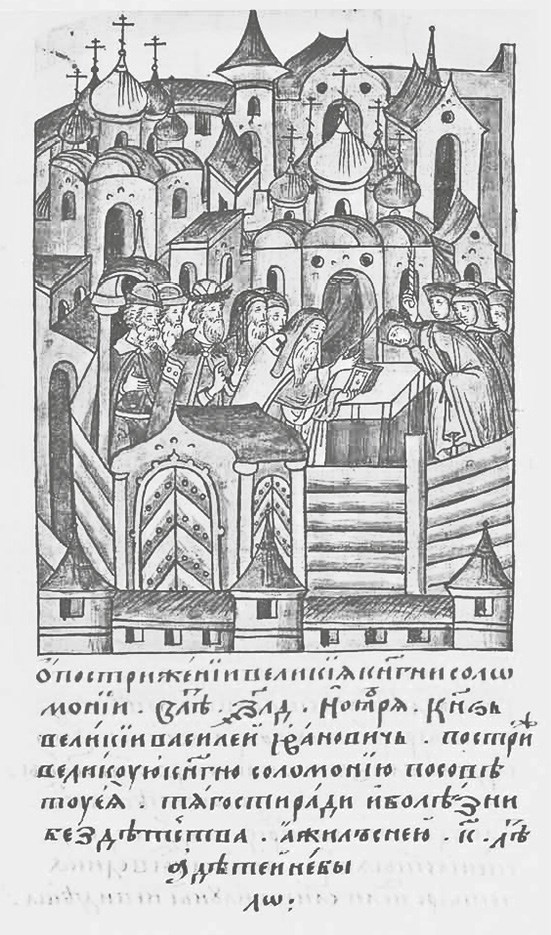 В сие время Василий, благоразумием заслуживая счастие в деяниях государственных, сделался и счастливым отцем семейства. Более трех лет Елена, вопреки желанию супруга и народа, не имела детей. Она ездила с великим князем в Переславль. Ростов, Ярославль, Вологду, на Белоозеро; ходила пешком в святые обители и пустыни, раздавала богатую милостыню, со слезами молилась о чадородии, и без услышания. Добрые жалели о том: некоторые, осуждая брак Василиев как беззаконный, с тайным удовольствием предсказывали, что Бог никогда не благословит оного плодом вожделенным. Наконец Елена оказалась беременною. Какой-то юродивый муж, именем Домитиан, объявил ей, что она будет материю Тита, широкого ума, и – в 1530 году, августа 25, в 7 часу ночи – действительно родился сын Иоанн, столь славный добром и злом в нашей истории! Пишут, что в самую ту минуту земля и небо потряслися от неслыханных громовых ударов, которые следовали один за другим с ужасною, непрерывною молниею. Вероятно, что гадатели двора великокняжеского умели растолковать сей случай в пользу новорожденного: не только отец, но и вся Москва, вся Россия, по словам летописца, были в восторге. Чрез десять дней великий князь отвез младенца в Троицкую лавру, где Игумен Иоасаф Скрыпицын вместе с благочестивейшими иноками, столетним Кассианом Босым, Иосифова Волоколамского монастыря, и Св. Даниилом Переславским окрестили его. Обливаясь слезами умиления, родитель взял из их рук своего дражайшего первенца и положил на раку Св. Сергия, моля Угодника, да будет ему наставником и защитником в опасностях жизни. Василий не знал, как изъявить благодарность Небу: сыпал золото в казны церковные и на бедных; велел отворить все темницы и снял опалу со многих знатных людей, бывших у него под гневом: с князя Федора Мстиславского, женатого на племяннице государевой и ясно уличенного в намерении бежать к Польскому Королю; с князей Щенятева, Суздальского Горбатого, Плещеева, Морозова, Аятцкою, Шигоны и других, подозреваемых в недоброжелательстве к Елене. С утра до вечера дворец наполнялся усердными поздравителями, не только московскими, но и самых отдаленных городов жителями, которые хотели единственно взглянуть на счастливого государя и сказать ему: «Мы счастливы вместе с тобою!» Пустынники, отшельники приходили благословить державного младенца в пеленах и были угощаемы за трапезою великокняжескою. В знак признательности к угодникам Божиим, защитникам Москвы, святым митрополитам Петру и Алексию, великий князь заказал сделать для их мощей богатые раки: для первого золотую, для второго серебряную. Одним словом, никто живее Василия не чувствовал радости быть отцем, тем более, что он – вероятно, тревожимый совестию за развод с несчастною первою супругою – мог видеть в сем благословенном плоде второго брака как бы знак Небесного умилостивления. – Елена чрез год и несколько месяцев родила еще сына Георгия. Тогда Государь женил меньшего брата своего, Андрея, на княжне Хованской, Евфросинии. Братья Симеон и Димитрий Иоанновичи скончались безбрачными: первый в 1518, а второй в 1521 году. Василий, кажется, не дозволял им жениться, пока не имел детей, чтобы отнять у них всякую мысль о наследовании престола.