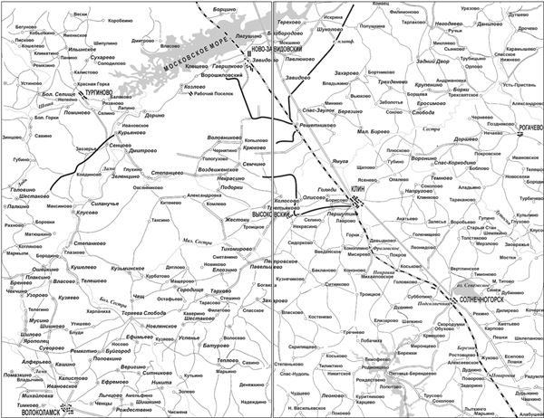 Кроме того, для авторов этих исследований характерно слабое знакомство со сведениями из стана противника. Вернее, речь идет о практически полном отсутствии таких сведений. Этот недостаток устранен в недавно вышедшей книге А. В. Исаева «Чудо под Москвой»[3]. Как и работы Б. М. Шапошникова и В. Д. Соколовского, эта книга описывает события, развернувшиеся на большом пространстве в течение довольно продолжительного времени. В отличие от предшественников автор ограничился рассмотрением только оборонительного периода битвы за Москву, что позволило ему более подробно описать оборонительные бои на дальних подступах к Клину. Однако при этом произошел перекос в сторону исследования действий нашей 16‐й армии и противостоявшего ей V-го армейского корпуса немцев. Действиям 30‐й армии уделено очень мало внимания. Едва упомянут контрудар 16‐й армии в районе Волоколамска в самом начале немецкого наступления, имевший большие, в основном негативные последствия, во многом определившие неудачный исход оборонительных боев за Клин. Также «за кадром» остались действия противников южнее Московского моря, да и собственно операции, развернувшиеся севернее города.