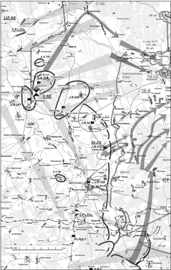 «Командарм, побывавший накануне в штабе фронта, привез вечером 14 ноября директиву: «Нанести удар волоколамской группировке противника во фланг и тыл». Перед 16‐й армией теперь стояла задача вернуть Волоколамск.