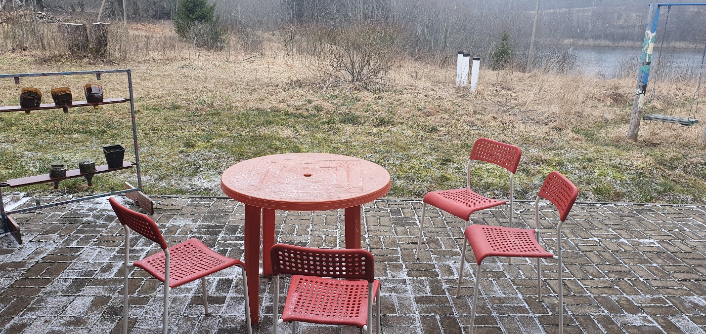 Погода отвратительная, за почти три недели было лишь дня четыре тёплых, весенних. А так, от ноля до плюс семи-восьми, дождь, снег, ветер, серое небо, серо-бурая земля. Лишь ёлки за озером мягко зеленеют на фоне голых ветвей соседних деревьев. В эту пору городским в деревне делать нечего. Ждём май, тепло, ждём лето с купаньем и рыбалкой. Лодка до сих пор перевёрнутой на берегу лежит. Сети мы не ставим, а на удочку клёва нет. Пробовали с купальных мостков.