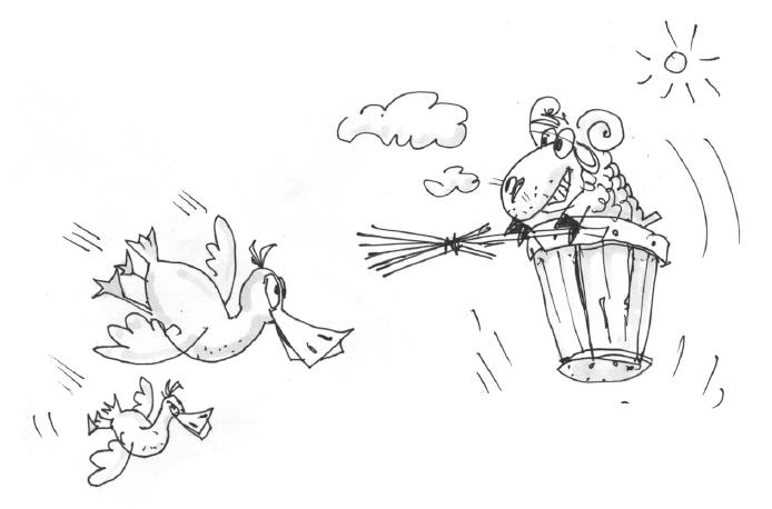 Главные коробочки стояли на площадях всех поселений Помогандии, и скоро всё население королевства поднялось «на крыло». Возмущённые утята стаями кружили над своими домиками и обгадили себе все крыши.