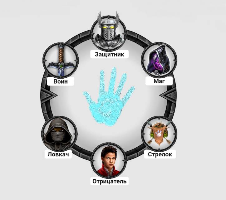 Внутренний круг был небольшим и аккуратным, всего шесть символов и посередине пустота в форме моей ладони. Базовые классы: воин, ловкач, стрелок, маг, защитник и, ммм, а это кто?