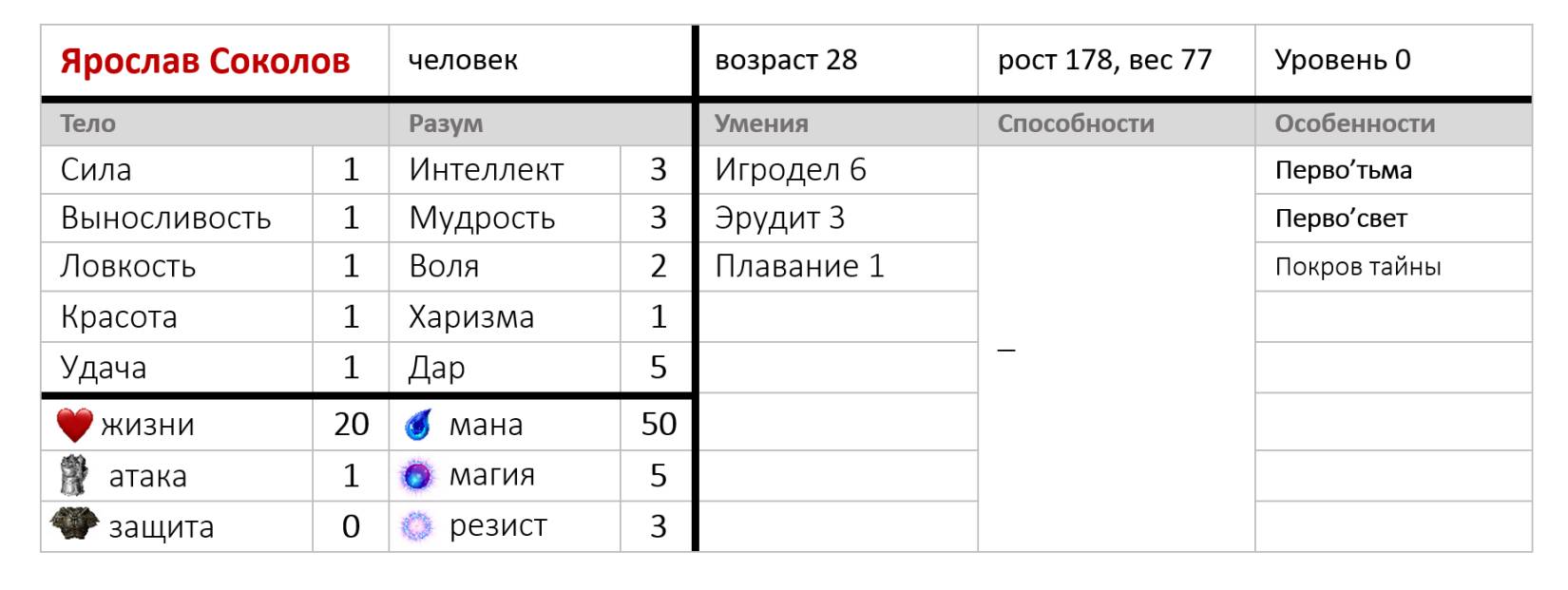 Таким меня определила Башня, кажется, вполне корректно. Красотой и харизмой не хвастал, как и физическими данными, но дохляком тоже не был. Всегда работал мозгами, а наличие воли и дисциплины помогало добиться успеха. Удивила удача: я всегда полагал, что она у меня нулевая, ни в минус, но и не в плюс. А оказывается, всё же немного удачлив. Дар 5 привёл меня в восторг. Вот она, креативность, моя самая сильная черта!