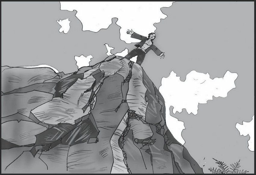 Маша же не решалась подойти к краю обрыва. В ее глазах стояли слезы. Она боялась.