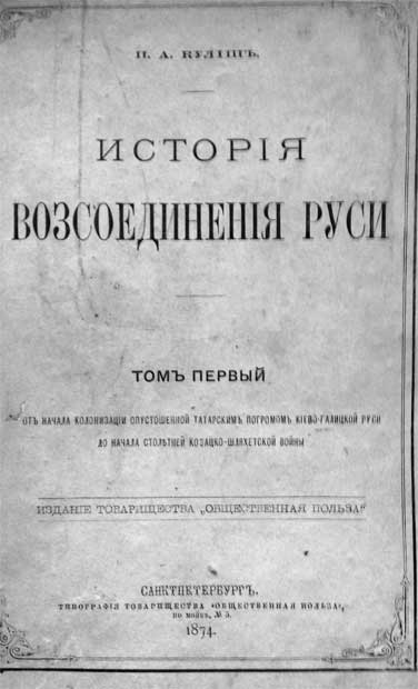История воссоединения Руси. Сочинение П. А. Кулиша
