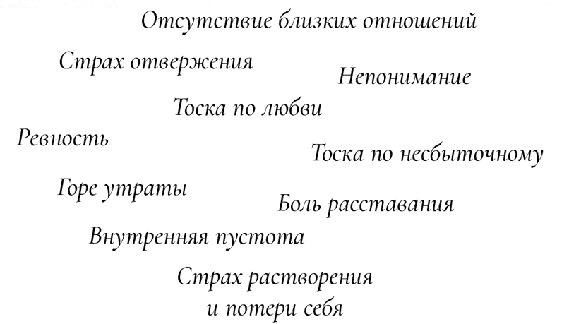 Жажда жизни может быть утолена влюбленностью, но только на время, потому как, с одной стороны, за очарованием наступает разочарование, а с другой – когда-то мы остаемся одни. Способность чувствовать себя живым независимо от присутствия другого человека – условие, необходимое для глубокого проживания жизни и обретения счастья. Вольно цитируя Э. Фромма, можно сказать, что стремление быть с другим зависит не только и не столько от силы любви, сколько от силы одиночества и неспособности обеспечивать собственное счастье самостоятельно. Чем меньше человек позволяет себе жить в радость, желать, делать то, что он по-настоящему хочет, тем отчаяннее он цепляется за другого. Падение (а оно часто случается, потому как влюбленность недолговечна и не всегда перерастает в зрелую любовь или дружбу) в таких случаях крайне болезненно.