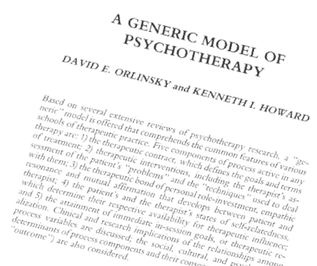 Общая модель была предложена Дэвидом Орлинским и Кеном Ховардом в 1984 году (Orlinsky, Howard, 1984). Она базируется на обзоре исследований и суммирует все аспекты психотерапии, которые можно изучить на практике. Развитие этой модели существенно поддержала работа Клауса Граве (Grawe, 1995), в которой он сделал попытку создания метатеории более высокого уровня с помощью общей теории психотерапии. В 1994 году Граве опубликовал результаты метаанализа 897 публикаций с приемлемым научным уровнем, посвященных эффективности различных направлений. На их основании он сделал вывод, что все методы психотерапии действуют по одним и тем же принципам и что модальность терапии оказывает значительно меньшее влияние, чем многие другие «универсальные» показатели (например, качество эмоционального контакта между клиентом и терапевтом, личность терапевта, мотивация изменения у клиента и другие факторы, которые называют общими).