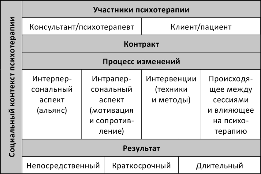 Общая модель рассматривает психотерапию системно, выделяя в ней: