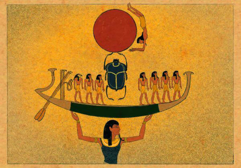 Ра в ладье. Иллюстрация фрагмента росписи из гробницы Сеннеджема