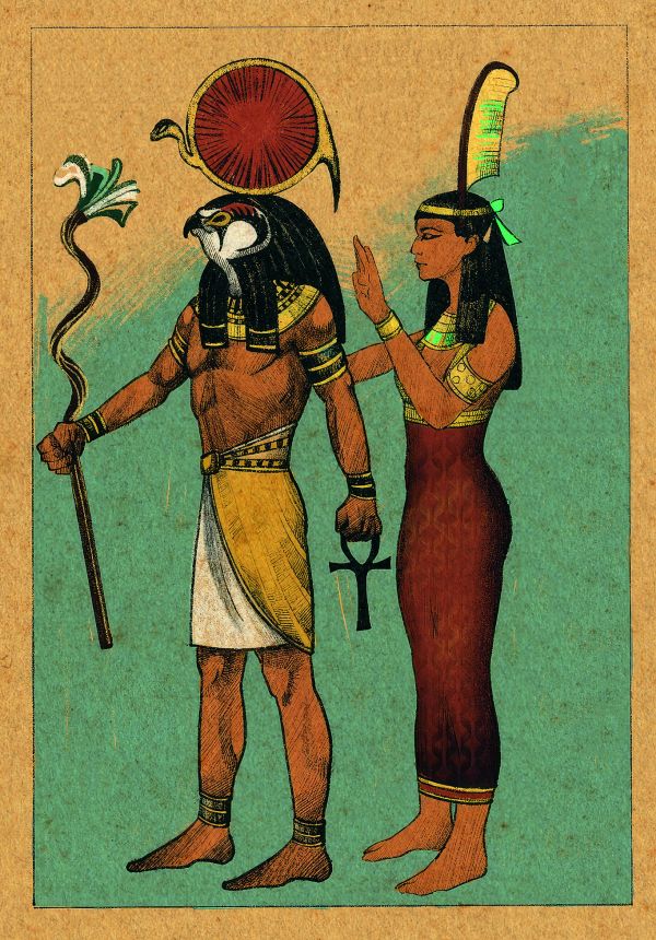 Ра-Хорахти и Маат. Иллюстрация фрагмента росписи из гробницы Таусерт/Сетнахта