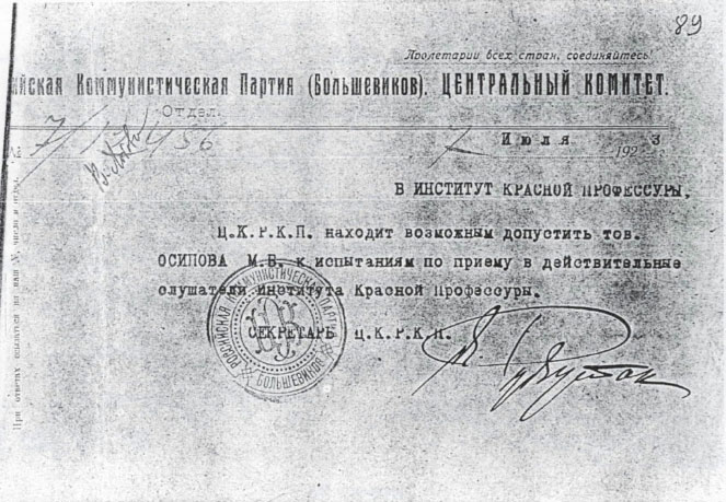 Критическое замечание Л. Троцкого на теоретическую работу М. Осипова "Теория Рев. Марксизма и практика Ленина"
