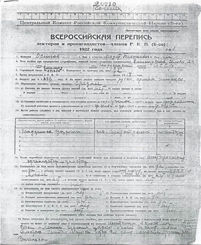 Биография М. Осипова, реконструированная по крупицам данных, почерпнутых из семейного архива Осиповых, а также из государственных архивов России и – с превеликими трудностями и окольными путями – Азербайджана, изложена на фоне и во взаимосвязи с историческими событиями 20–30-х годов прошлого столетия.