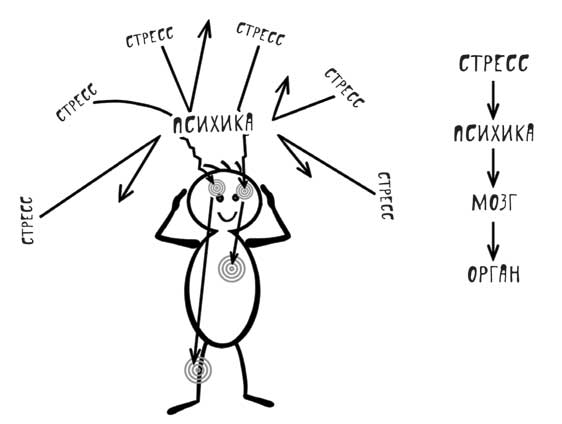 Рисунок 2. Цепочка: стресс – психика – мозг – орган