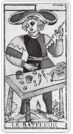 Наиболее традиционным персонажем, фигурирующим на карте, является Маг или Волшебник, но не сказочный, а вполне реальный типаж в костюме средневекового горожанина.