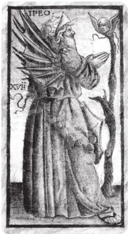 На карте № XVII изображена фантастическая фигура благородного старца, по своему виду напоминающего традиционного Моисея, изображённого в момент явления ему архангела Уриила (Исх. 3:1–2).