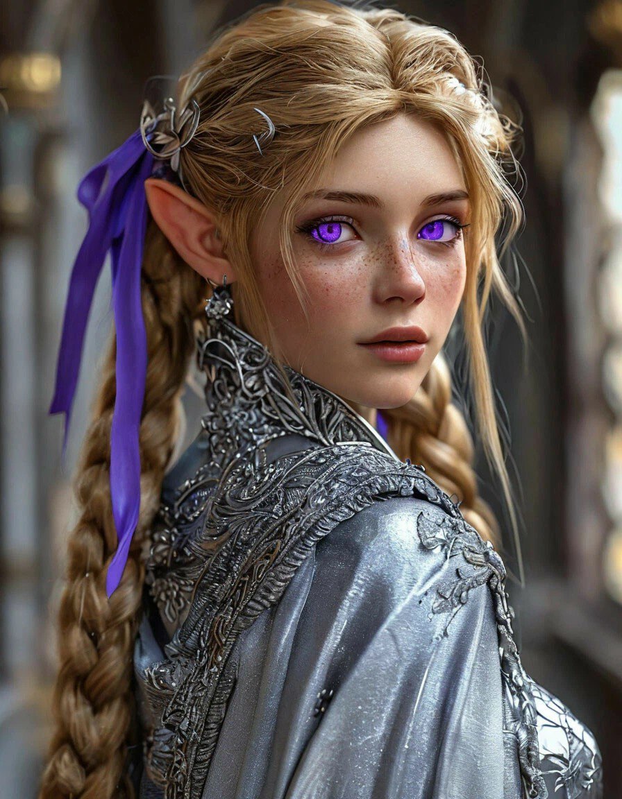 Передо мной стояла высокая эльфийка с золотистыми волосами и завораживающими глазами цвета фиалки. Худющая, в серебристой мантии и фиолетовой лентой в волосах. Её надменность мгновенно растаяла, сменившись любопытством.