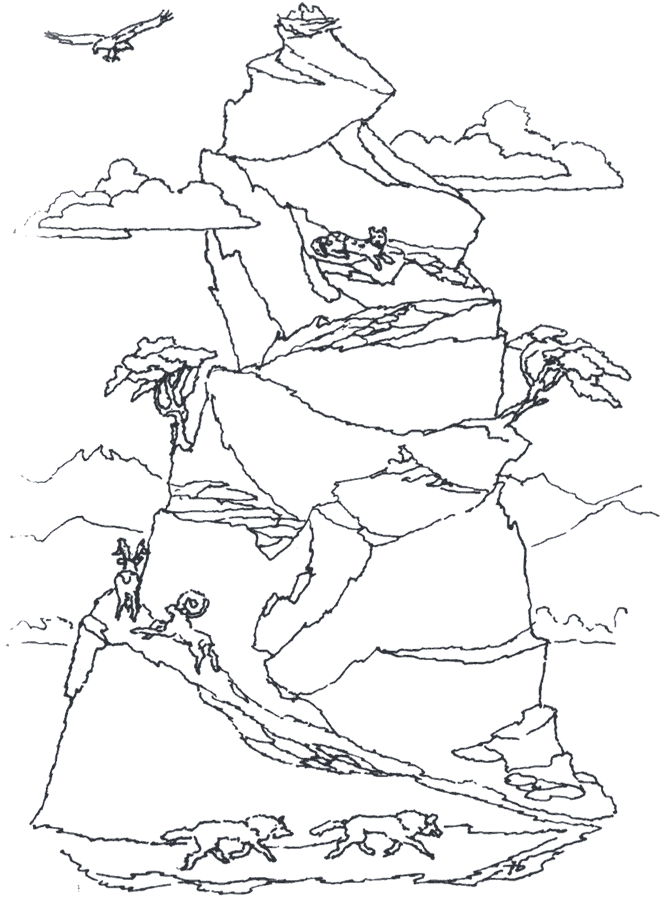 И он один сидит неподвижно у самых рогов, которые кажутся порослями каменного кустарника: любому волку впору спрятаться под этими рогами.