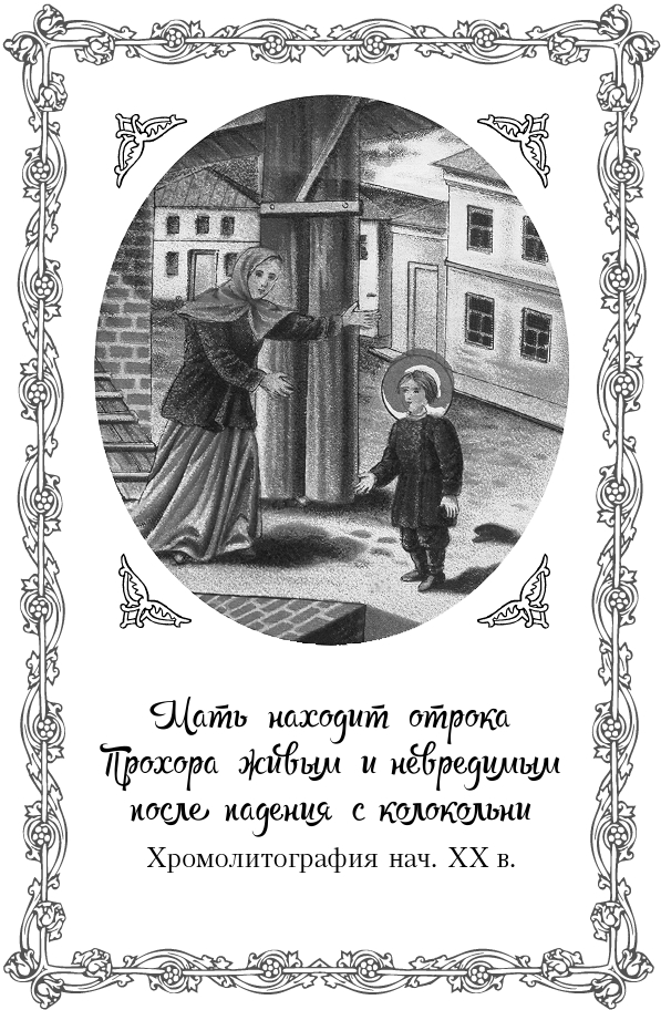 Когда Проше исполнилось десять лет, он тяжко захворал. День ото дня ему становилось всё хуже и хуже. Он ослаб так, что уже совсем не поднимался с постели. Бедная мать не отходила от него, неотступно призывая Бога и моля Его о помощи. В одну из ночей Проша впал в забытьё, метался в горячке, дышал часто и прерывисто. Казалось, он умирает. Вне себя от горя, Агафья велела старшей дочери Прасковье бежать за священником, как вдруг Прохор привстал и осенил себя крестным знамением. – Матушка… Сестрица… Пресвятая Богородица обещала посетить нас и исцелить меня от болезни.