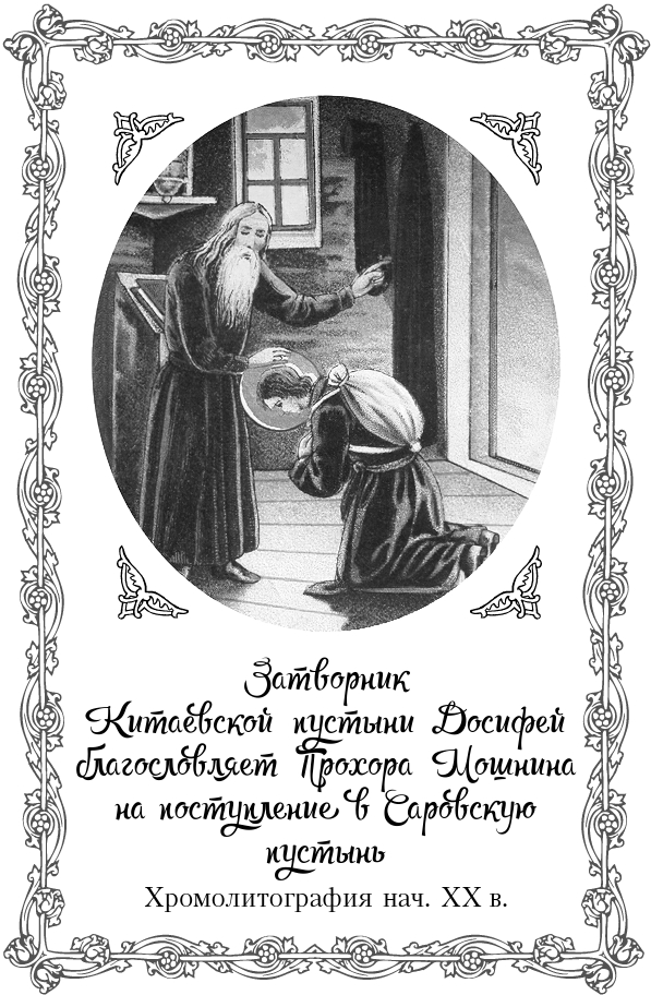 Дорога в Саров пролегала через тёмные дремучие леса, полные дикого зверья и разбойников. Не часто на ней можно было встретить прохожего: она была безлюдна и опасна. Осенив себя крестным знамением и всецело положась на волю Божию, по этой дороге и двинулся Прохор. Шёл неустанно, с молитвой на устах. Редко-редко с грохотом нагоняла его тряская телега. И суровый мужик-возница, попридержав разгорячённую лошадёнку, милостиво предлагал подбросить до ближайшего селения, лежащего на пути.