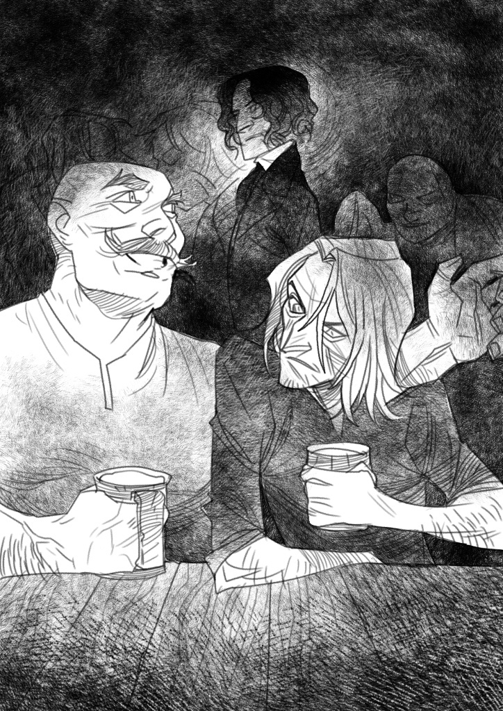 Официанты – здоровые бородатые мужики, поскольку другие их коллеги в подобном заведении бы просто не прижились, поняли хозяина без лишних слов. Детины, не церемонясь, схватили пьянчужек под руки и выпихнули из трактира взашей. А Гофман подошел к столику, смахнул со столешницы хлебные крошки грязным полотенцем и льстиво заулыбался:
