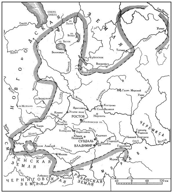 «Русью» в Залесских землях вплоть до XIII века называли преимущественно Южную Русь – Киевскую, Черниговскую и Переяславскую области. Суздальские князья стремились к тому, чтобы иметь здесь свою «часть», то есть свой удел, закрепить своё присутствие. Так, со времён Юрия Долгорукого они владели или по крайней мере претендовали на то, чтобы владеть Южным Переяславлем – городом на реке Трубеж, притоке Днепра. Городец Остёрский, на левом берегу Десны при впадении в неё реки Остёр, на стыке Черниговского и Переяславского княжеств, некогда принадлежал тому же Юрию Долгорукому и входил в состав Переяславского княжества. Он, однако, был полностью сожжён ещё в 1152 году Изяславом Киевским и союзными ему черниговскими князьями и долго оставался пустым. И вот сорок с лишним лет спустя Всеволод Юрьевич вспомнил о своих «отчинных» правах на этот город и приступил к возведению здесь новой крепости.