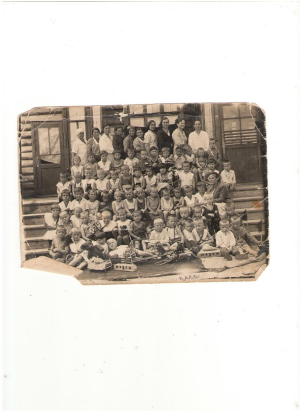 Работники и воспитанники детского сада, 1940-е гг. Фото предоставлено Пойм Н. М.