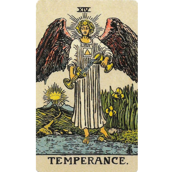«Умеренность» – это не просто умеренность в поступках, а глубинный алхимический процесс интеграции противоположностей: мужского и женского, света и тьмы, тела и души. Это этап, когда после трансформации (Смерти) начинается тонкая настройка внутренней системы. Карта указывает на точку баланса, где человек способен жить в потоке, следуя не эго, а Высшему Пути. Это духовное смирение, доведение энергий до гармонии, наведение «внутреннего моста» между небом и землёй.