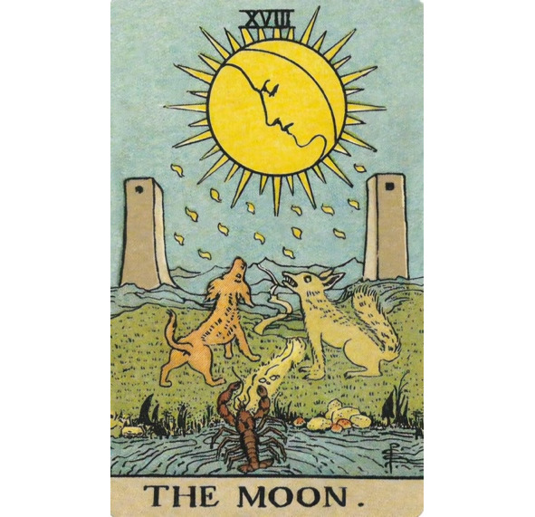 Скрытый смысл: Карта Луна указывает на необходимость пройти через внутреннюю тьму, разобраться с иллюзиями, страхами и теневыми сторонами. Она призывает к внутреннему исследованию, не полагаться на внешние формы. Луна – испытание интуицией, проверка верности собственному внутреннему пути. Это момент, когда логика молчит, а голос подсознания ведёт вперёд.