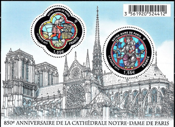 Сувэнірны аркуш прысьвечаны 850-годзьдзю Сабору Парыскай Божай Маці, выдадзены поштай Францыі ў 2013