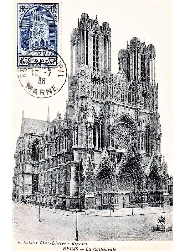 Рэймскі сабор. Картмаксімум пошты Францыі, выдадзены ў 1938