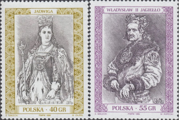Ядвіга (1374—99), Сьвятая, Кароль Польскі (1384—86). Уладзіслаў ІІ Ягайла (1351—1434) Вялікі Князь Літоўскі (1377—92), Кароль Польскі (1386—1434). Шэраг каралёй і князёў польскіх (1890—92). Ян Матэйка (1838—93). Маркі пошты Польшчы, выдадзеныя ў 1996