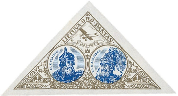Бірута і Кейстут. Марка пошты Летувы, выдадзеная ў 1932