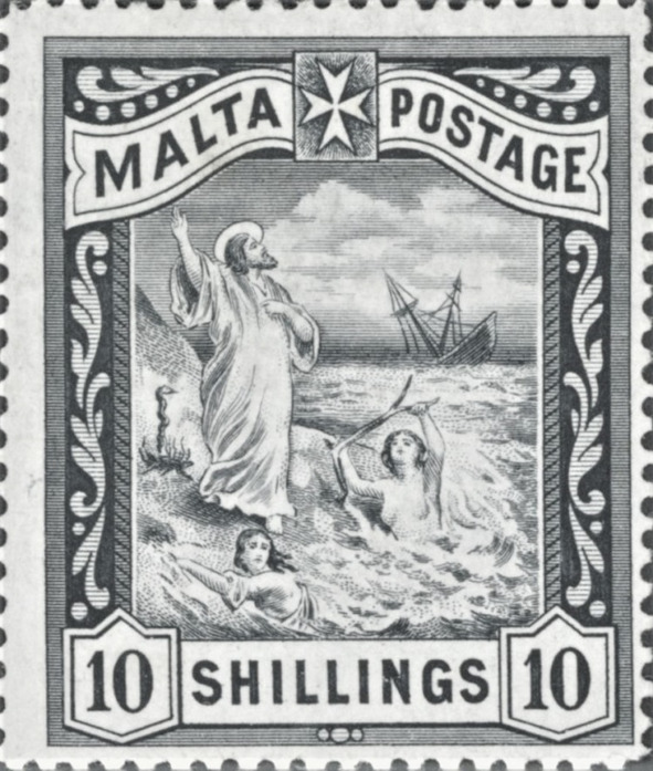 Наступным было выданьне пошты Мальты па карціне Густава Доры – «Сьвяты Павал пасьля караблекрушэньня». За Сьвятым Паўлам ў вогнішчы зьмяя. Падзея адбылася пазьней, калі Апостал грэўся ля вогнішча і на яго напала зьмяя. «Але ён, абтросшы зьмяю ў вагонь, не зазнаў аніякае шкоды» (Дзеі 28:5).