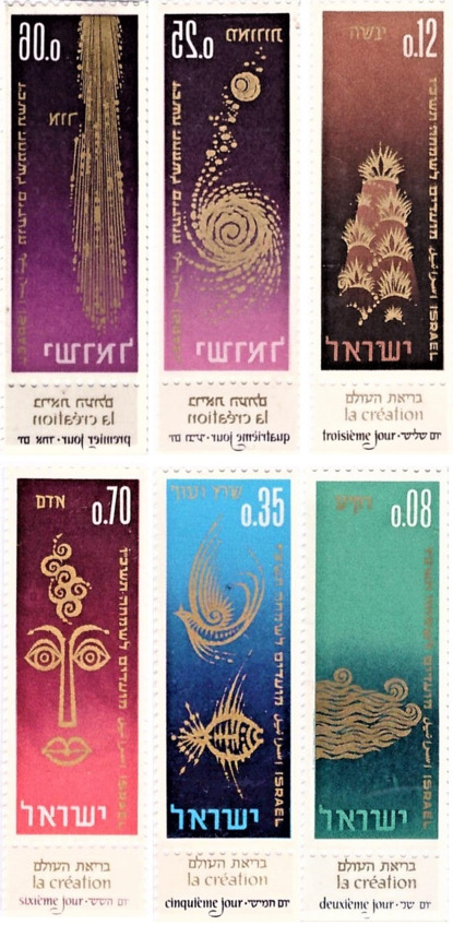 Стварэньне Сьвету. Маркі пошты Ізраілю, выдадзеныя ў 1965 годзе