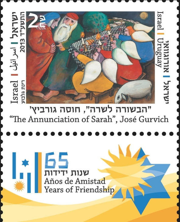 Дабравешчаньне Сары (1969). Хасэ Гурвіч (1927—1974). Марка поштаў Ізраілю і Уругваю, выдадзеная ў 2013 годзе
